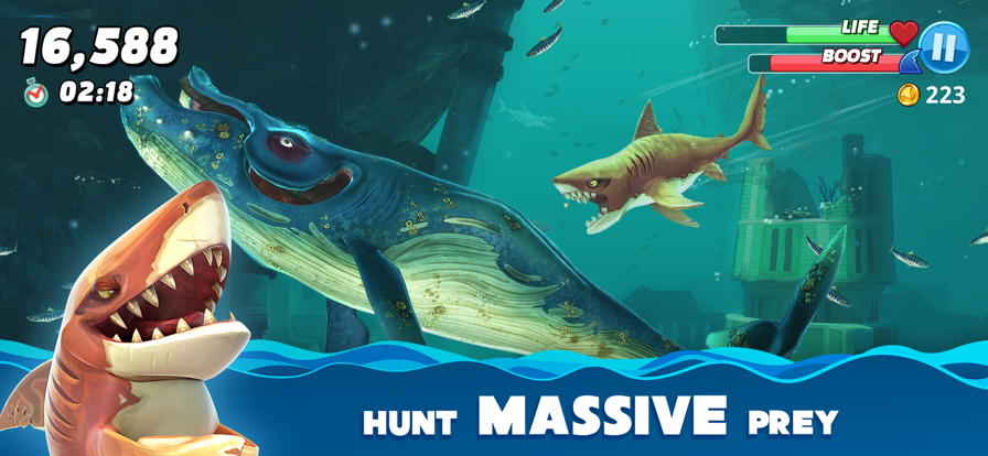 饥饿鲨进化各版本大全带来刺激而又充满乐趣的游戏,让玩家扮演一条饥饿的鲨鱼,并通过吃掉其他海洋生物来不断进化和成长。在这个充满竞争的海洋世界中,你将面对各种挑战和危险,只有不断进化才能在食物链上生存下去。通过吃掉其他海洋生物,你的鲨鱼将不断进化,变得更大、更强大,并获得新的技能和能力,让你能够对抗更强的敌人。多个不同的海洋场景,包括珊瑚礁、深海和海底洞穴等,每个场景都有独特的生物和挑战,让玩家体验不同的游戏乐趣。