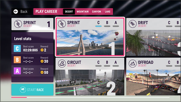 3、游戏拥有相当丰富的游戏内容,包括不同的赛道和不同的游戏模式,让你的游戏体验拥有新奇的体验。