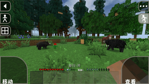 6、游戏中,玩家可以操纵角色进行移动和建造建筑,点击右上角眼睛图标,你还可以调整游戏视角;