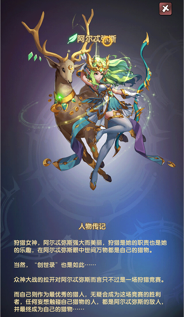阿尔忒弥斯是狩猎之神。作为宙斯之女、阿波罗之姊,拥有端丽的容姿、父神的宠爱和可供无尽狩猎的猎场的她,按理说并无什么追逐创世录的必要,而她本人也一直是这么认为的。
