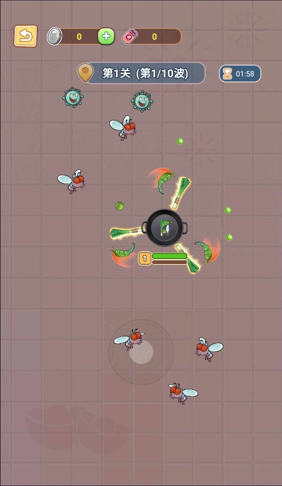 2、保护厨房中的各种食物是你的终极任务,小心各种病毒的攻击
