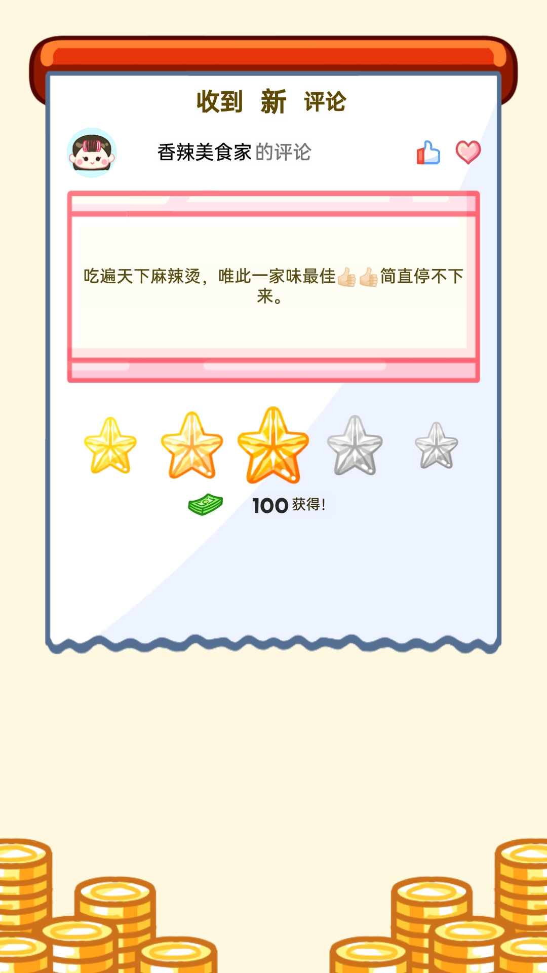 2、完整的麻辣烫制作与经营过程,让玩家在游戏中体验烹饪与商业运营的双重乐趣。