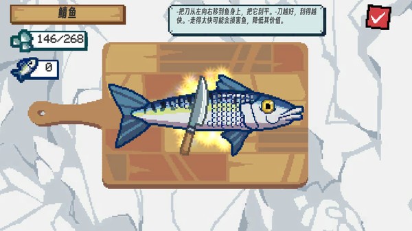 2、清理鱼类进行烹饪,更多的游戏美食在这里解锁,烹饪出美味的食物