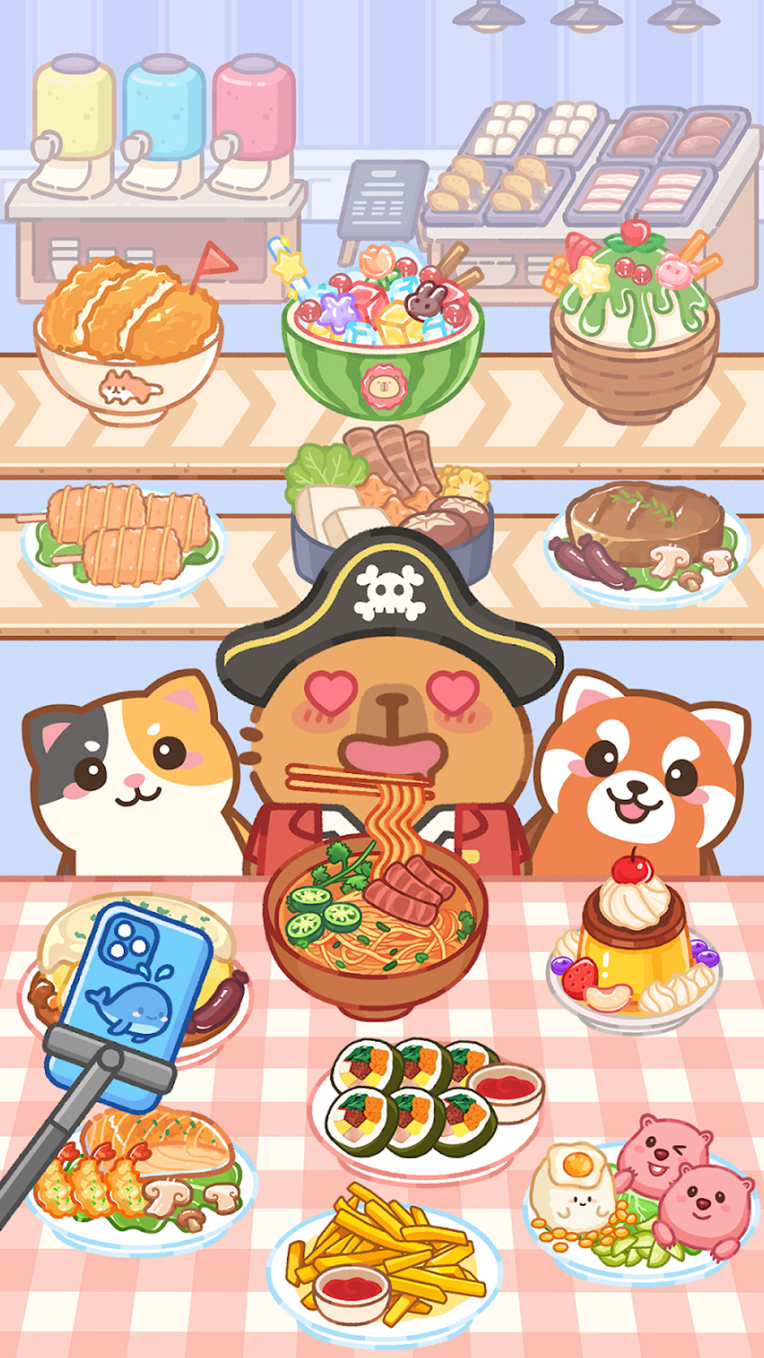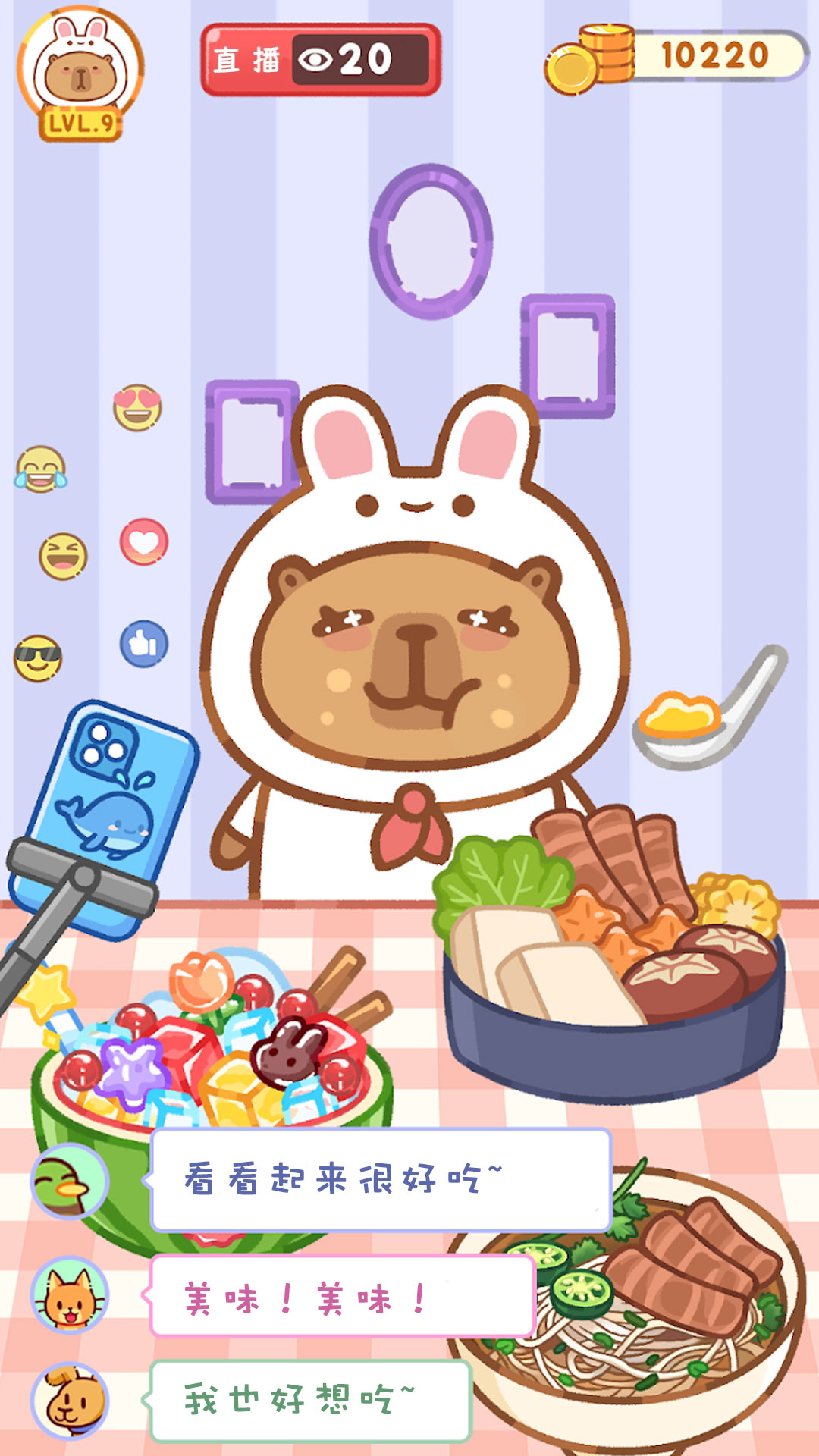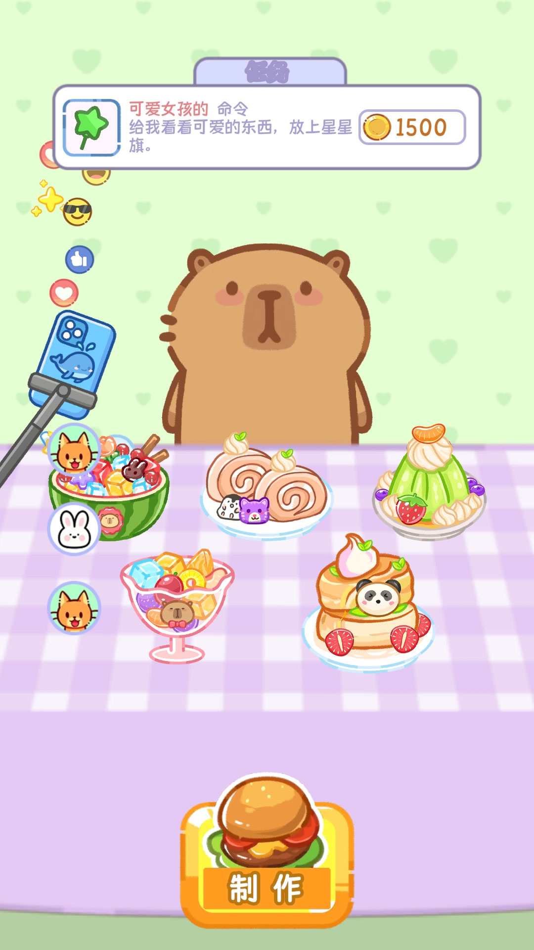 2、可以为卡皮巴拉们换上各种可爱的服装和饰品,成为最时尚的吃播明星。