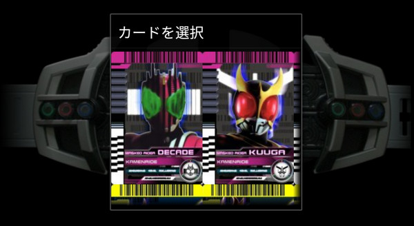2、启动机关,出现骑士卡,左右滑动这个小窗口,可查看到电视剧中出现的所有骑士卡,选择一张进行变身。
