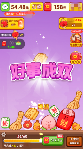 3、当玩家完成灯笼的目标合成就能获得可以提取的红包。