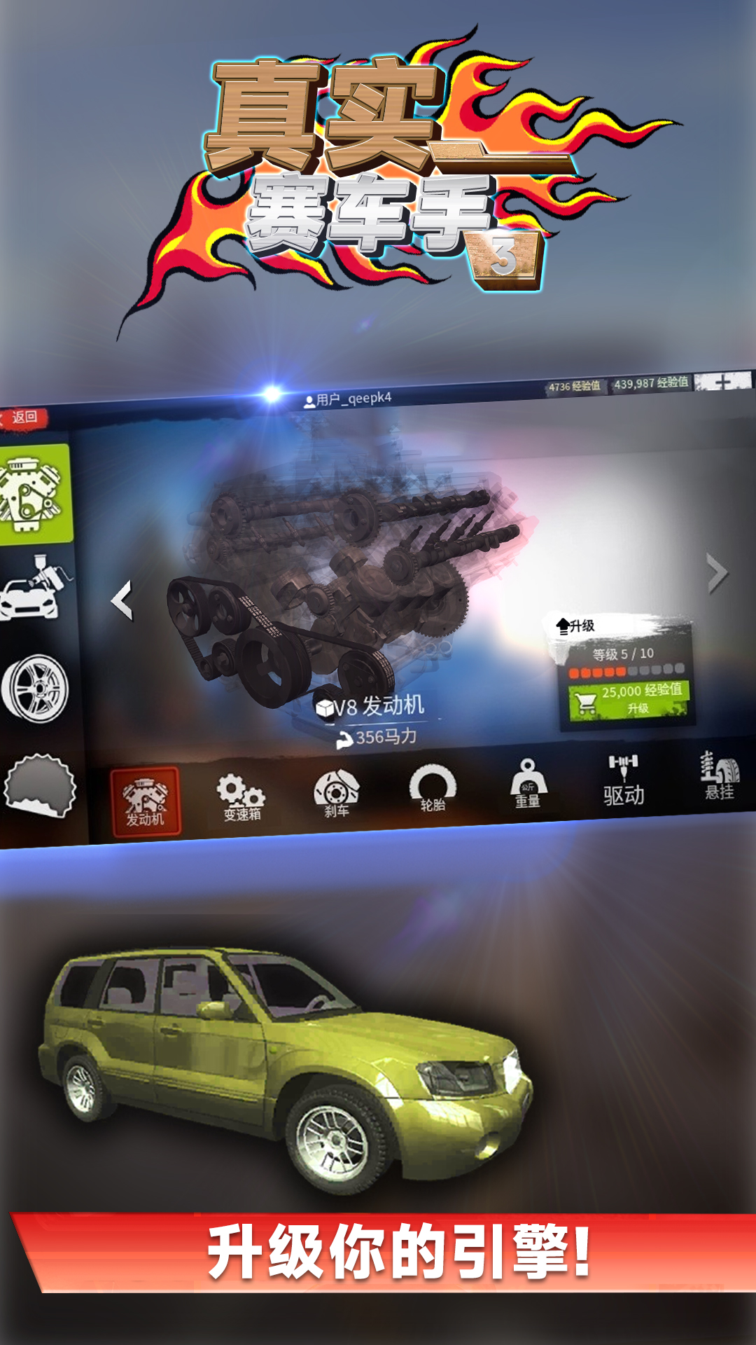 2、使用比赛获得的奖金,对赛车的进行升级,还能改装外观。