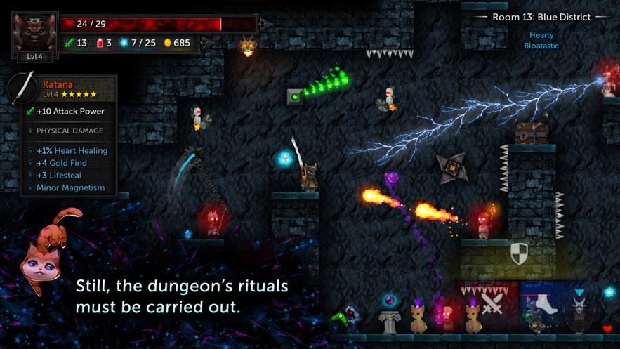 烛火地牢2猫咪的诅咒是一款动作元素的地牢冒险游戏,玩家将化身为主角探索充满魔法与危机的地牢世界,邂逅各种NPC伙伴,还能遇见各种神秘的事件,解决事件来获得相关的道具推进游戏的进程。游戏的操作难度很高,需要玩家不断的磨炼自己的技术才能在战斗中更好的应对敌人。地牢游戏爱好者必玩的作品。
