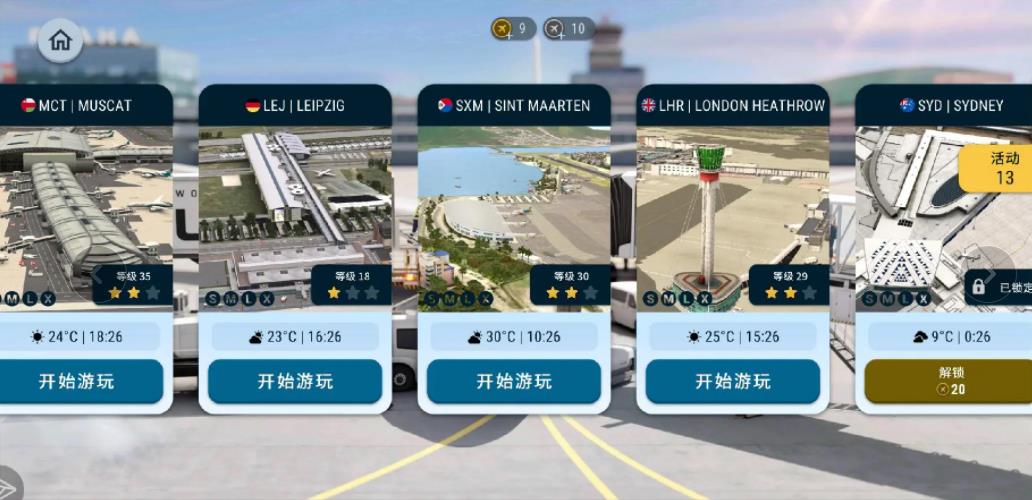 2、绿币可以用来购买合同和飞机,解锁新的航站楼和停机位,还有购买服务航班所需要的设备。每个机场设备的价格和数量都不一样,设备和地勤人员越多,服务的飞机数量越多,所需时间也越短,每个机场设备的数量是固定的。绿币在每一次处理完航班后都会获得,飞机越大航程越远,获得的绿币就越多。