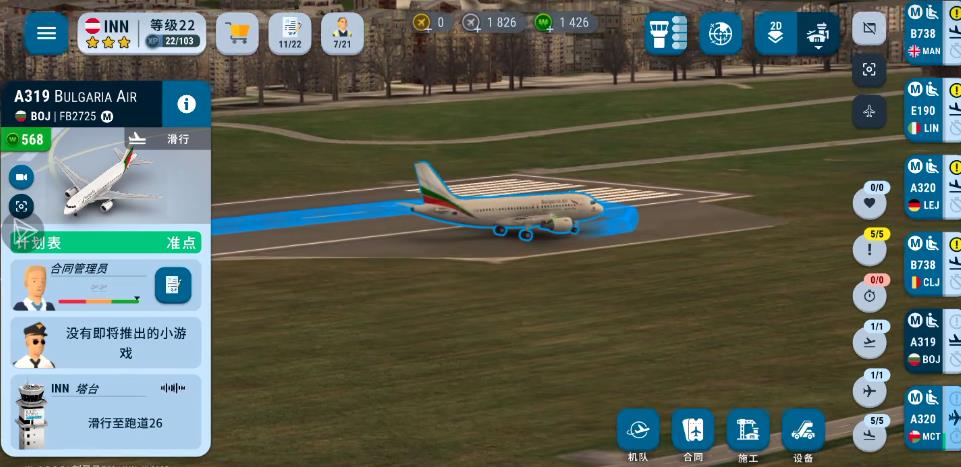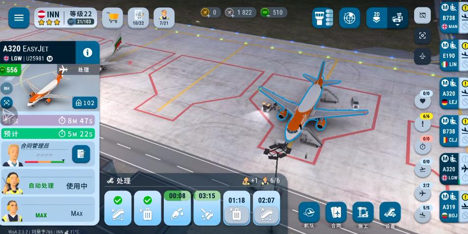 5、每个机场的前期都是很肝的,前期可以多依靠系统刷出的本地合同。推荐先买各种地勤设备再签署新合同,然后攒钱买机位,因为购买机位会送一个地勤人员,买航站楼也会送一名地勤。新手可以先攒钱购买设备,每个机型的停机坪各买一个,不要在同一个停机坪升级。在机场前期发展时需要合理利用所有资源,小型飞机建议到后期之后再取消。同时注意设备和地勤人数,地勤人数不够可以看广告领取。