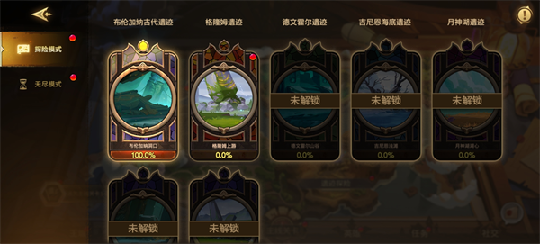 - 探险模式:探险模式不会刷新,玩家同时只能挑战一关,并且每关只能获取一次奖励,也是获得神器装备的途径。