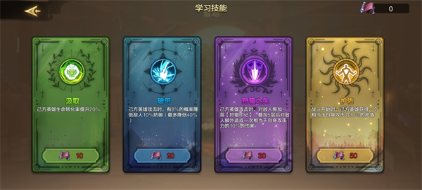 战斗胜利会掉落【技能残卷】,用于学习技能,在本次战斗中享受增益效果。