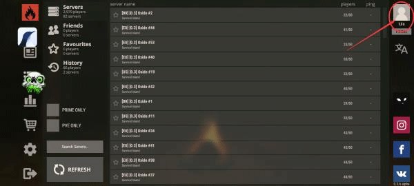 1、首先下载并安装氧化物生存岛游戏,进入主界面,点击右上角。