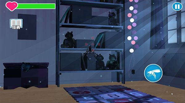 玩家需要悄悄潜伏在房间内,避免发出嗡嗡声,等待人类睡着后选择合适的部位吸血。