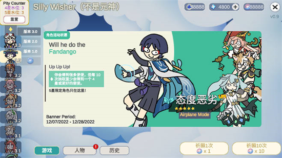 3、切换卡池后点击右下角祈愿1次或祈愿10次