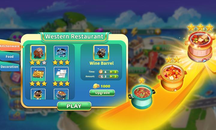 1、快速完成游戏中的订单,升级游戏中的工具等级,解压开始烹饪