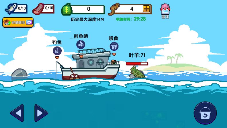 1、像素钓鱼玩法非常有趣,刮鱼鳞的玩法非常解压