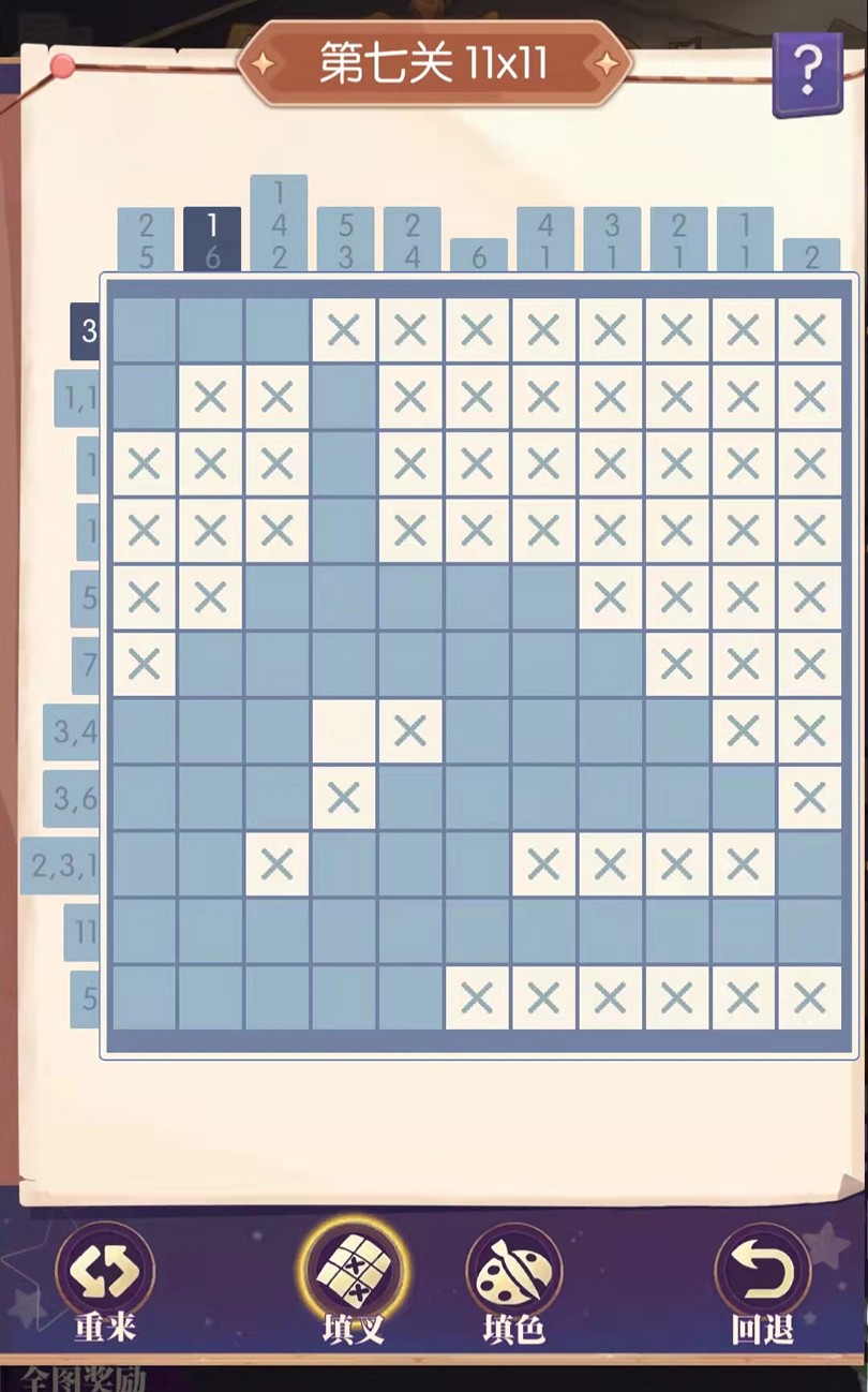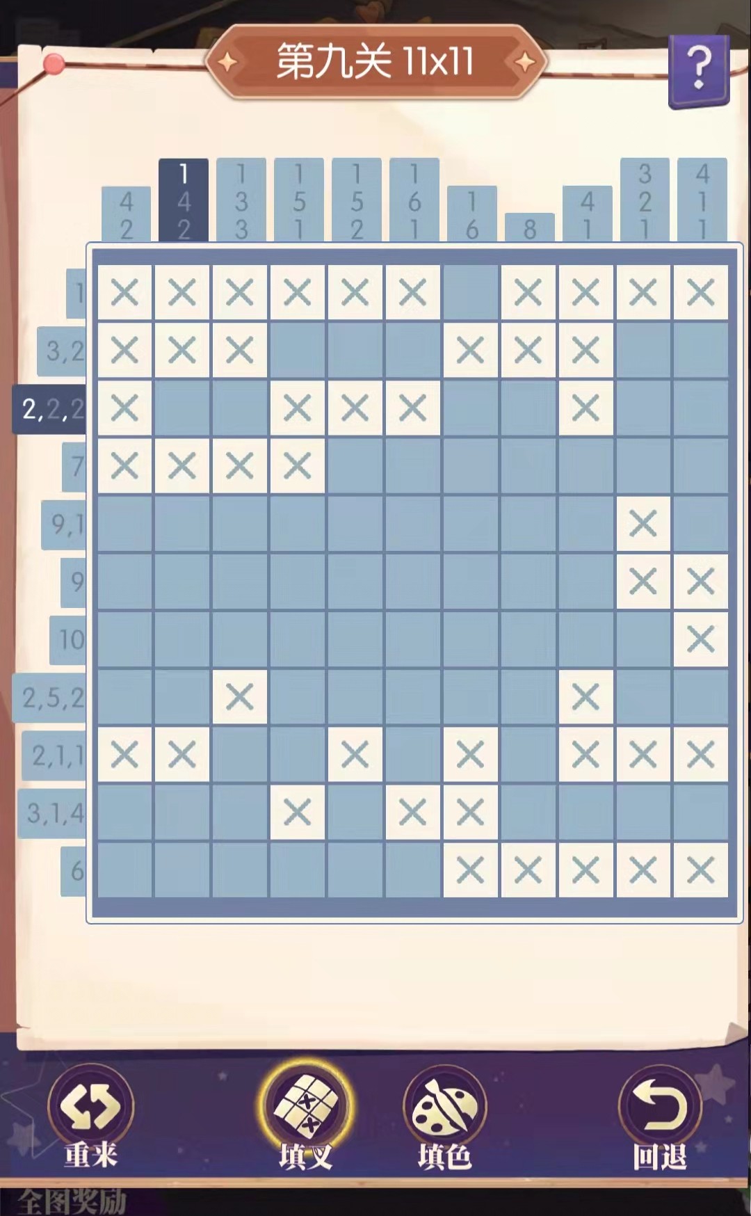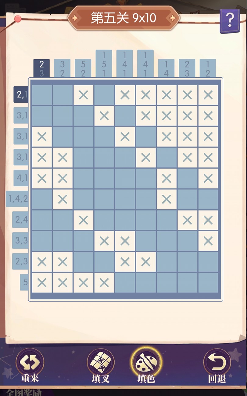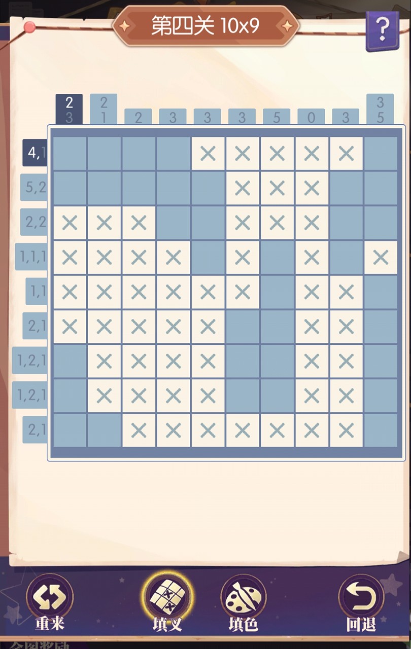 5,本质上就是个逻辑推理玩法,小诀窍就是从0开始填叉(该列/行全部为×),或者从最大数开始填色(该列/行全部为填色格)。如最小数不为0,则建议从最大数数的开始填色。然后进行横向纵向交叉推理,过程中可能会遇到少量二选一的情况,可进行实际推演。
