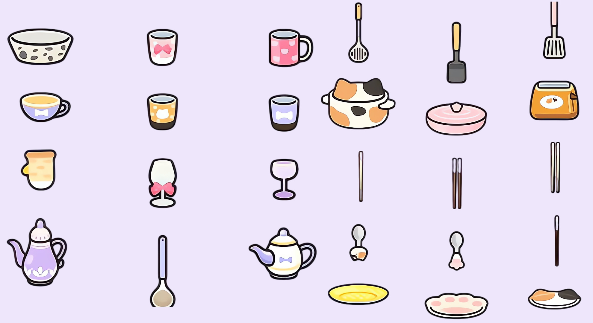 8、厨房用品也有很多新的,比如杯子、叉子、面包机、猫猫盘子等等。