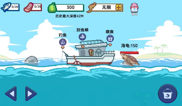 小人和小船最新版本游戏是一款从钓鱼、刮鱼鳞、喂食等玩法的像素游戏,在这里可以轻松的去钓鱼,放置鱼钩到海里,就可以看到鱼钩和小鱼,有小鱼咬钩就可以钓上来鱼儿了,然后就可以进入船舱里来刮鱼鳞,第一人称沉浸式的俯视角去刮鱼鳞,需要掌握好力度,把握好鱼儿的完整性,最后就是制作美食给宠物。感兴趣的可以来下载体验。