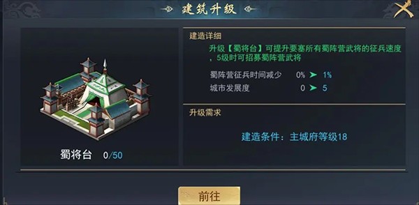 其他相对比较重要的产能建筑,像是国家武将台,是可以解锁对应国家招募的,对于喜好收集的玩家是很有必要开启的。