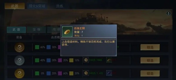 正常锻造装备所需的材料:【生铁】、【百炼玄铁】、【银锋精钢】