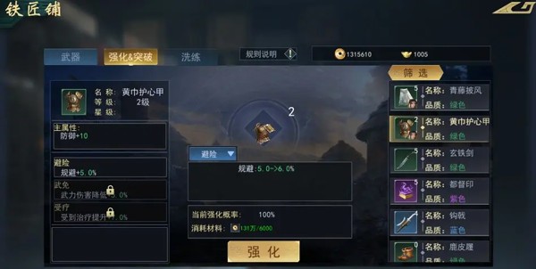 装备强化会消耗强化石和高级强化石与金币,强化次数越多,强化概率就越低。