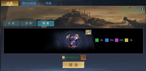 发展度1700开启装备锻造,锻造分为正常锻造和传世锻造。