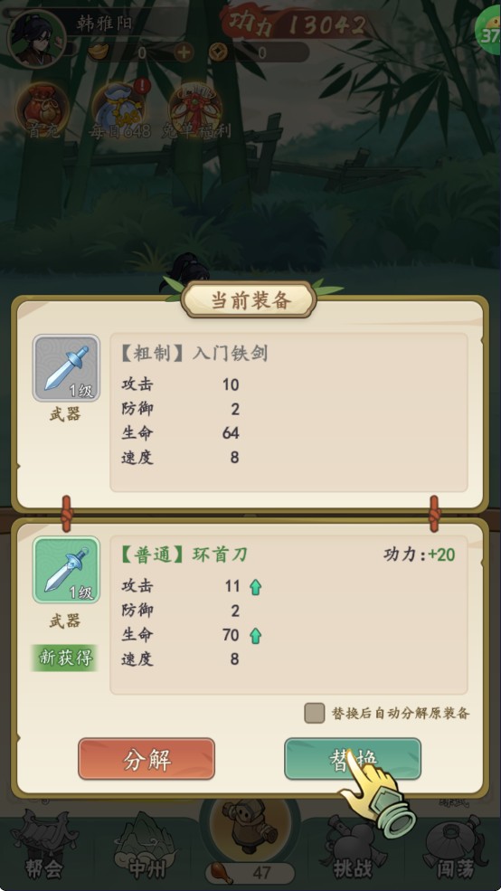 3、如果获得用不上的装备便分解掉吧,可以获得一些铜钱和功力