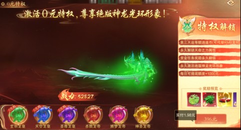 激活养龙寺0元特权,神龙光环形象,超多福利特权,能提高养龙寺额度,每日免费仙玉额度!!!