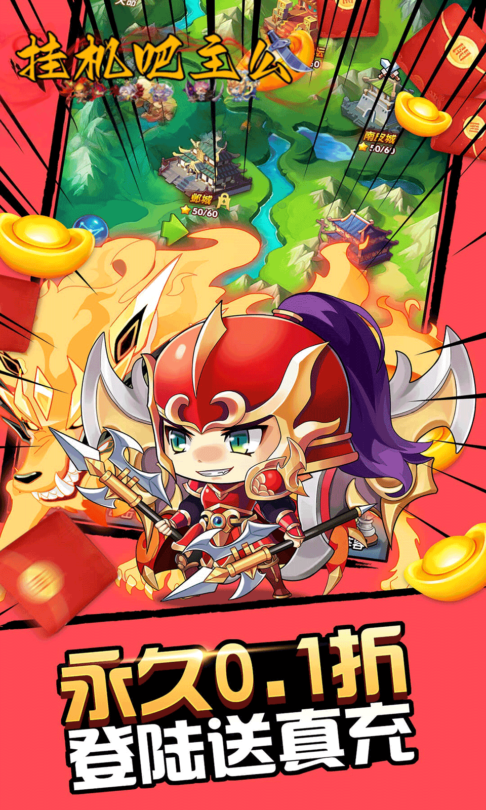 挂机吧主公0.05折6480免费版作为一款三国世界为背景的挂机卡牌战斗类游戏,动漫化的卡通画风设计出不同的角色卡牌,放置挂机合适的武将阵容开始战斗闯关,还原三国乱斗,竞技作战玩法非常有趣,搭配武将开始游戏战斗,还有熟悉的角色可以解锁搭配,更多的内容可以解锁,养成卡牌,战斗过程非常流畅,一键挂机战斗,更多的玩法可以轻松解锁,三国名将可以自由收集培养,喜欢的玩家快来游戏挑战吧!