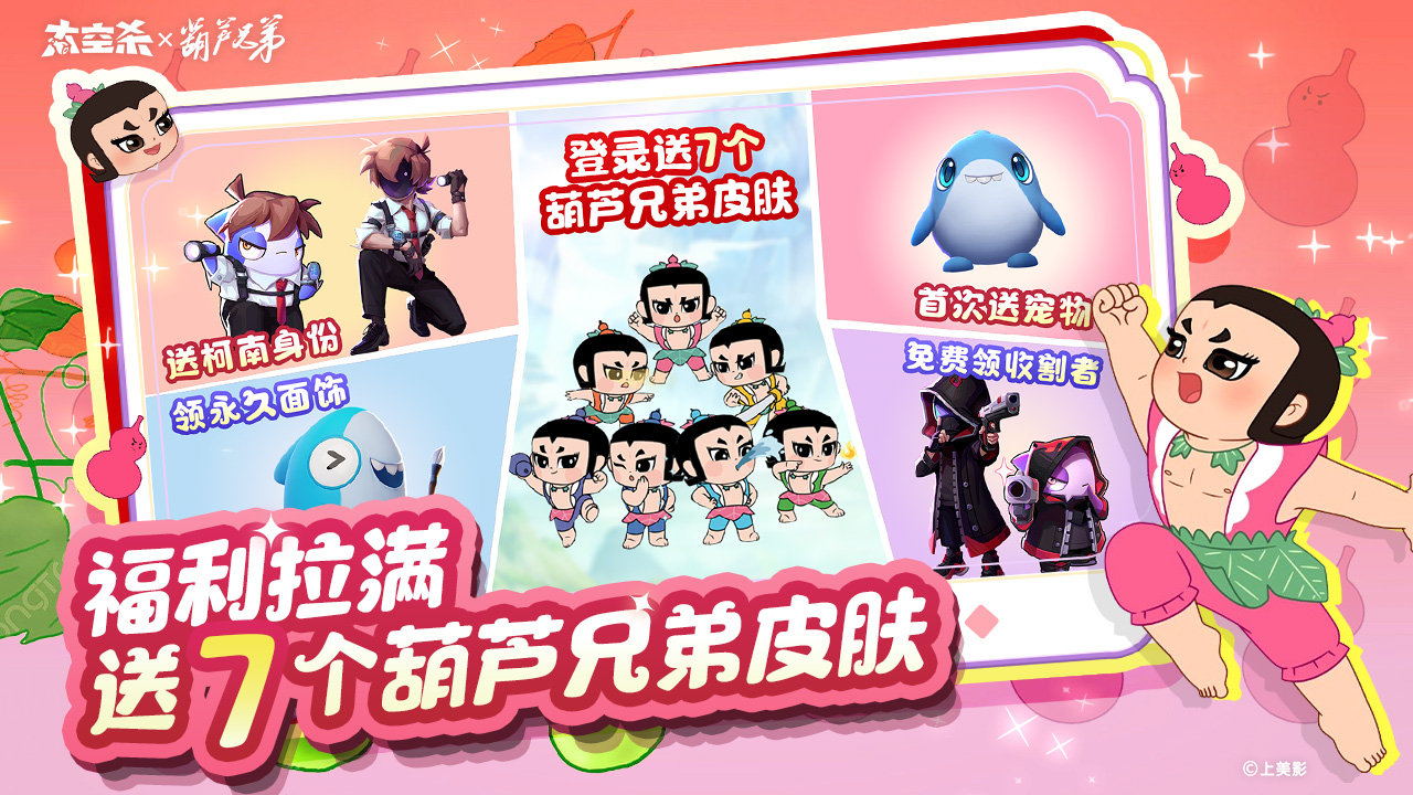 《太空杀》与国民经典IP《葫芦兄弟》跨界联动!上线送「7个葫芦娃」全套传说皮肤,首次送神宠「鲨仔」!两个联动身份「葫芦娃&蛇精」展开世纪对决,特别打造葫芦山地图,带你重温经典,畅玩一夏!