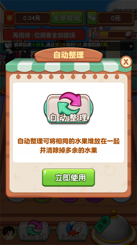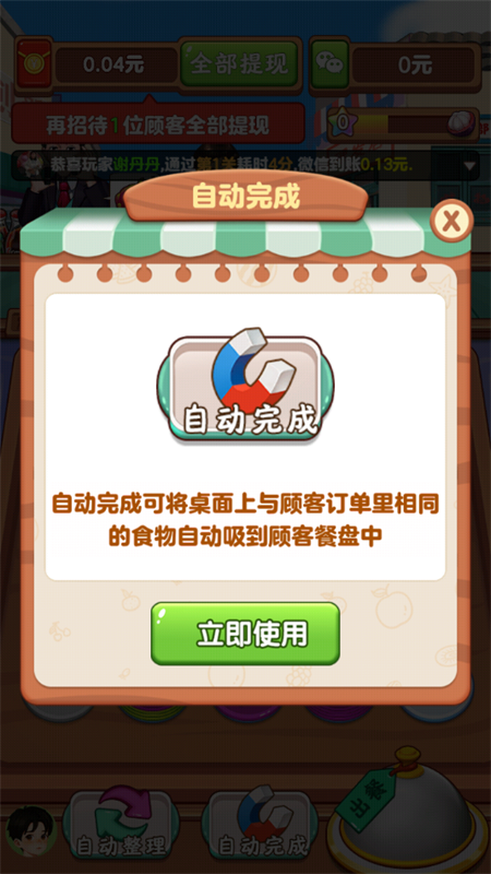 3、我们将菜品交给外卖员这样就完成游戏流程了,此外,我们完成相应的关卡之后还能够解锁红包,达到相应的目标就可以提现。