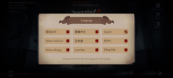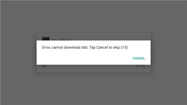 1、在本站下载第五人格国际服Identity V安装包之后打开游戏,点击CANCEL重启游戏;