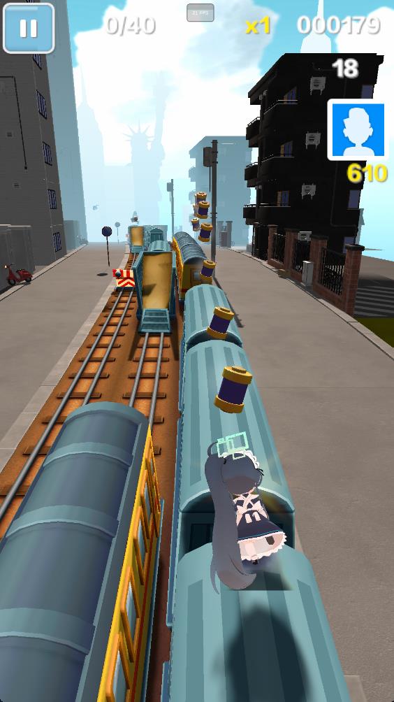 3、正式开始后左右滑动可以更改轨道,向上滑动是跳跃,向下滑动是翻滚