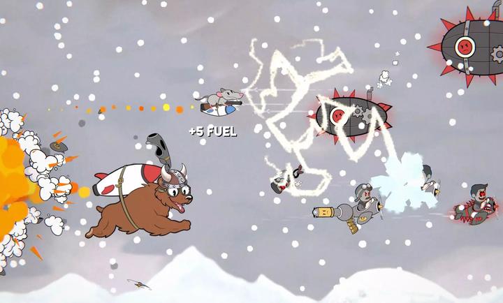 3、可以通过撞击敌人的飞机或者是射击,成为喷气动力熊享受快感。