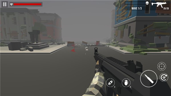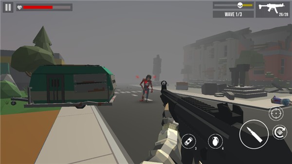 2、在游戏中通过左边屏幕移动来控制方向,右边子弹按钮则是发射弹药击杀僵尸