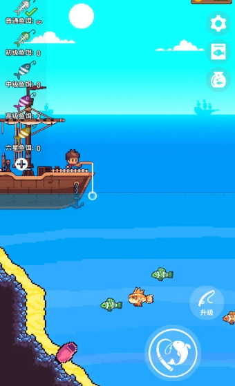 3、钓鱼玩法非常的轻松,操作玩法非常轻松,像素风格设计非常优秀