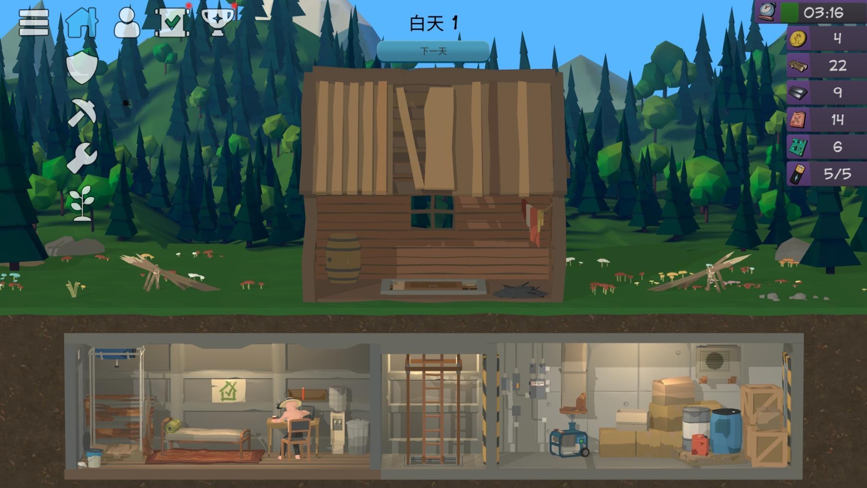 1、打开游戏,进入森林世界,建造自己的庇护所保护自己