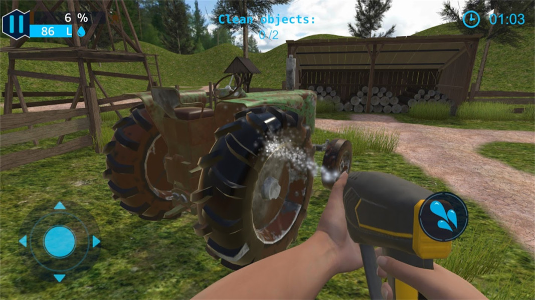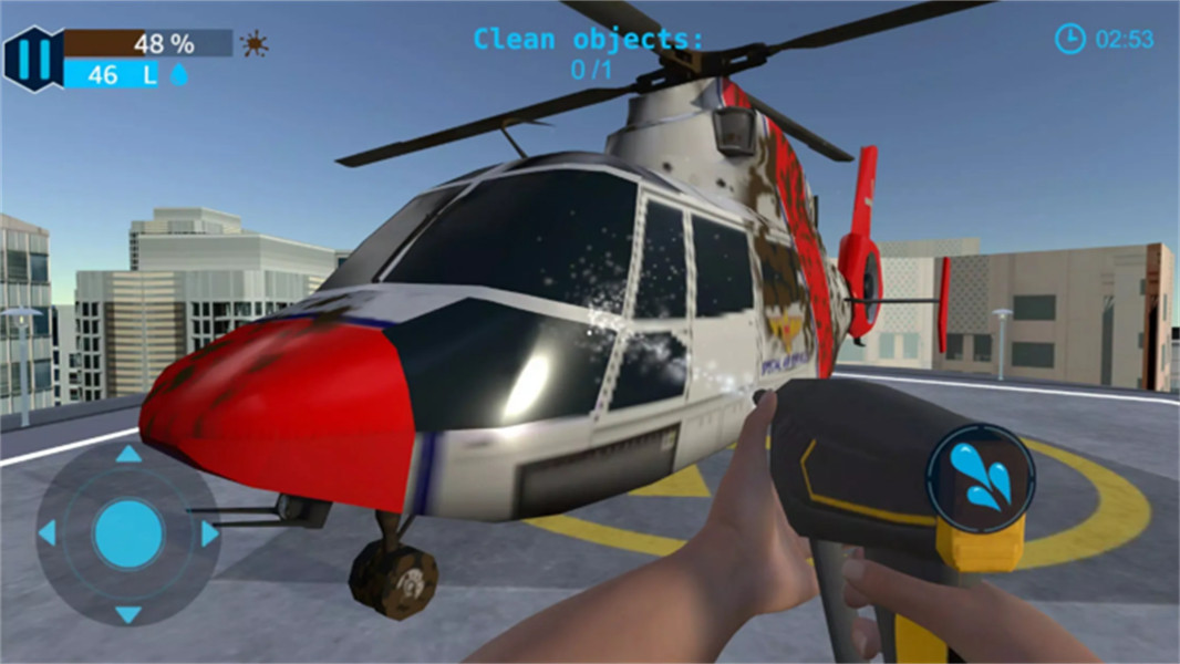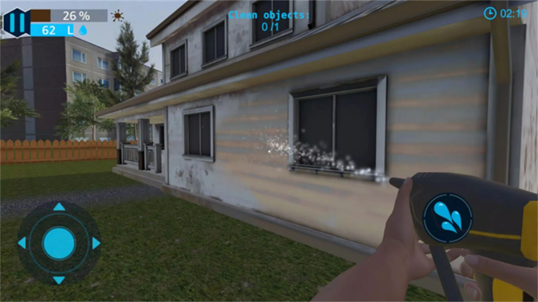 4、玩家可以按右边的水滴键,清理眼前物体,左边控制360的视角,你需要360无死角清理眼前的物体;