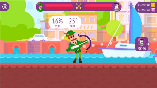 1、进入游戏后,通过滑动屏幕来控制力度、角度和角色的攻击方向。
