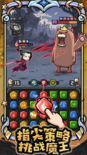 3、消除三个相同属性的方块,对敌人造成伤害。