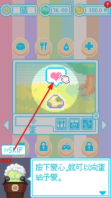 5、爱心满后就可以孵出史莱姆,来照看史莱姆