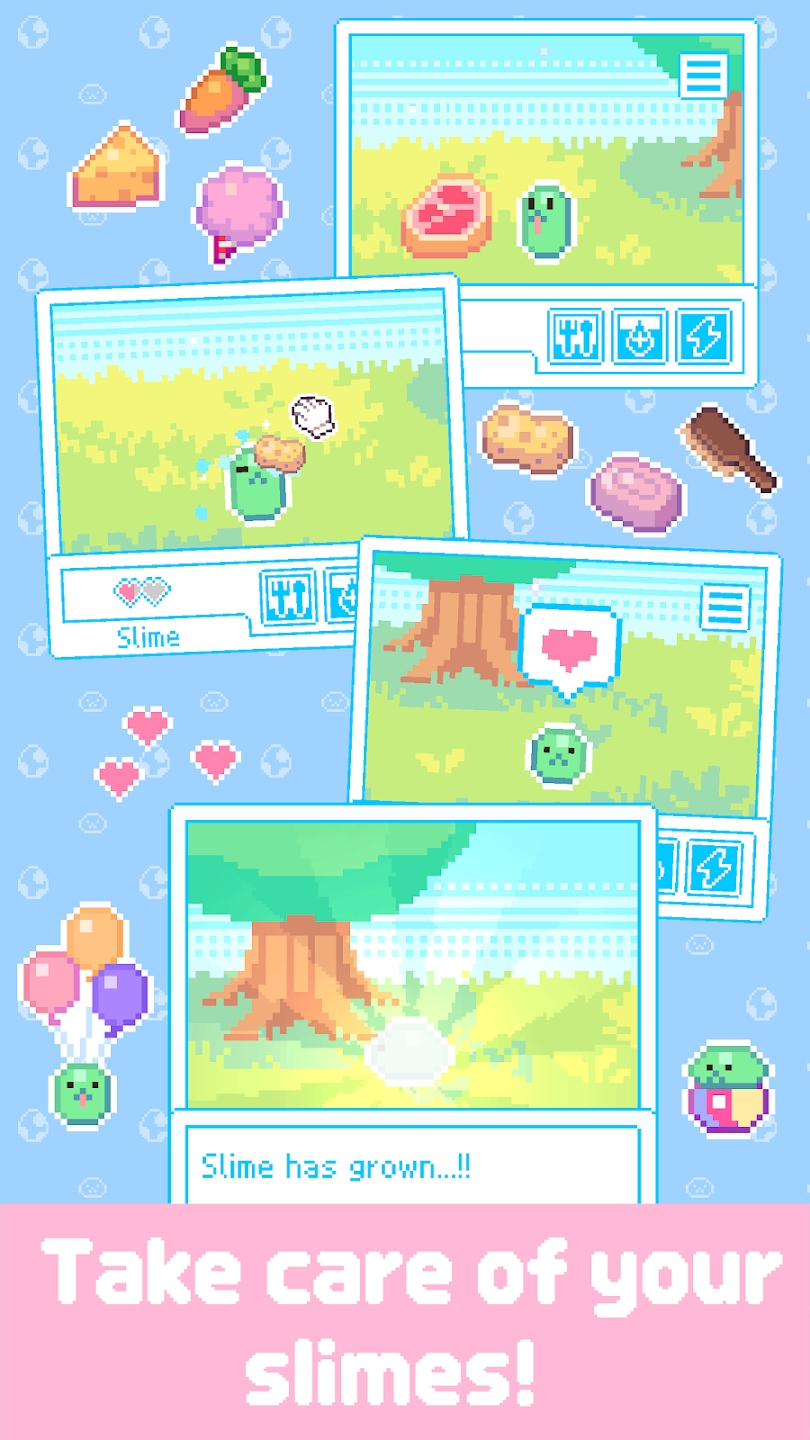 1、通过喂食,清洁,陪伴互动等玩法来养鱼你的史莱姆蛋。