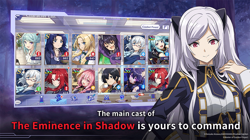 我想成为影之强者日服游戏是由由KADOKAWA与日本Aiming一起制作的同名动漫改编的二次元卡牌手游,本游戏完美还原了游戏里的剧情关卡和角色,可以听到最还原的原声优配音的角色,为游戏的角色注入灵魂。游戏里玩家可以收集喜欢的角色,组建一个属于自己的小队去战斗,角色稀有度不同,职业定位也不一样,玩家需要合理搭配,帮助自己更好的去推图,在游戏里挑战黑暗教团,粉碎黑暗吧。