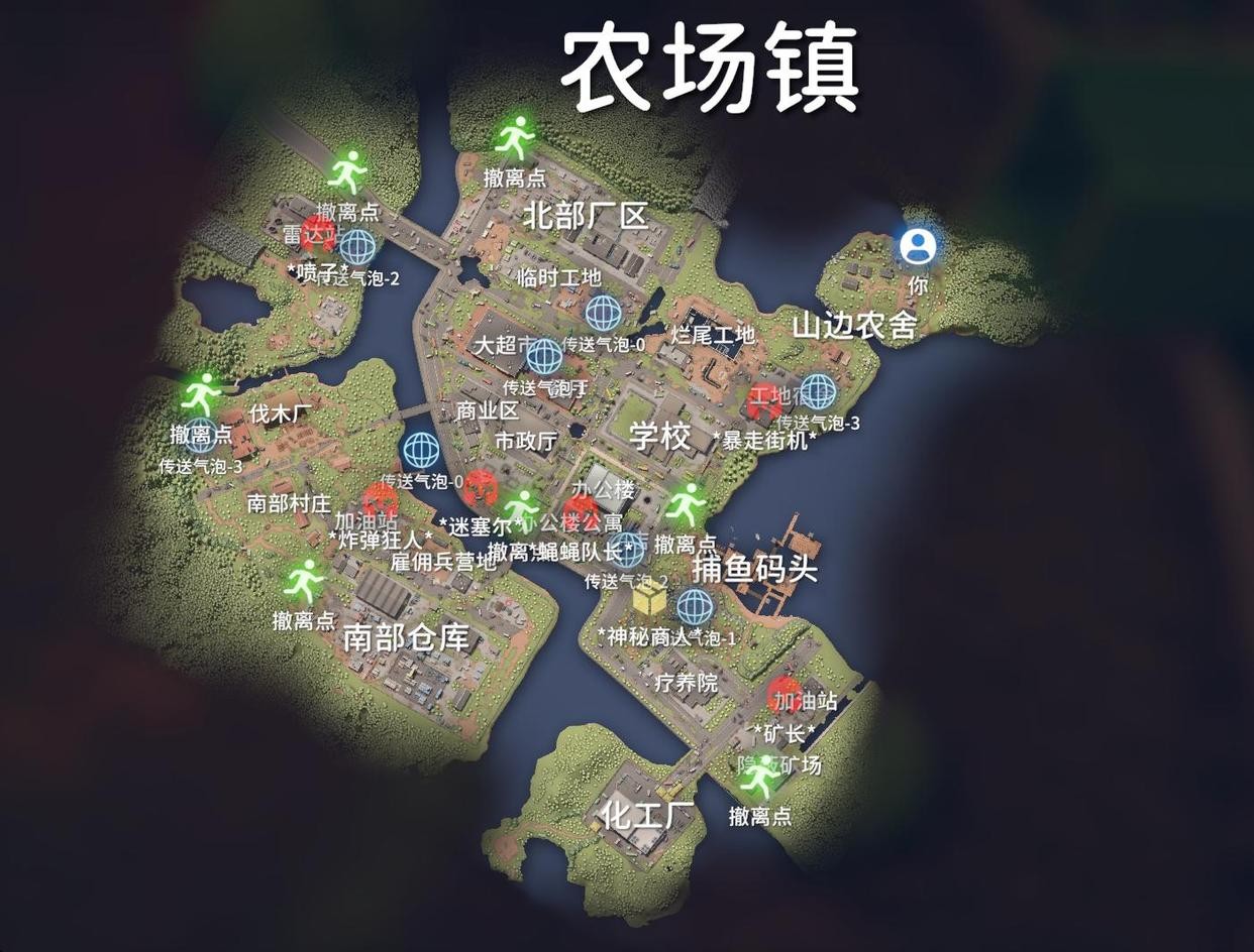 来到仓库区西厂区背后的爆破图标处,炸开穿过集装箱就可以到农场镇了,传送信标就在入口不远处,解锁装备不好就可以溜边撤离了。