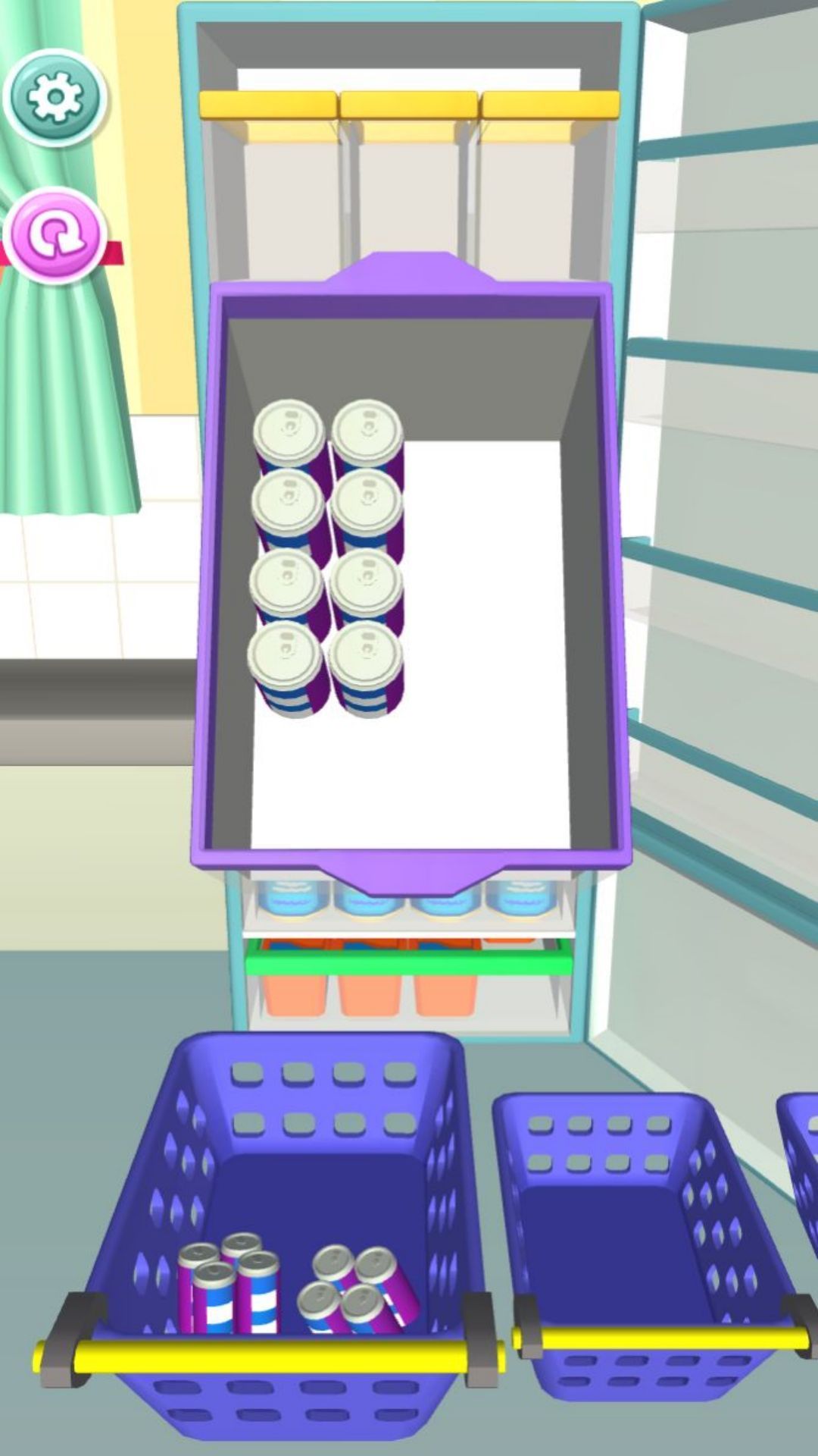 1、玩家可以不断闯关,快速收纳这里的冰箱物品。