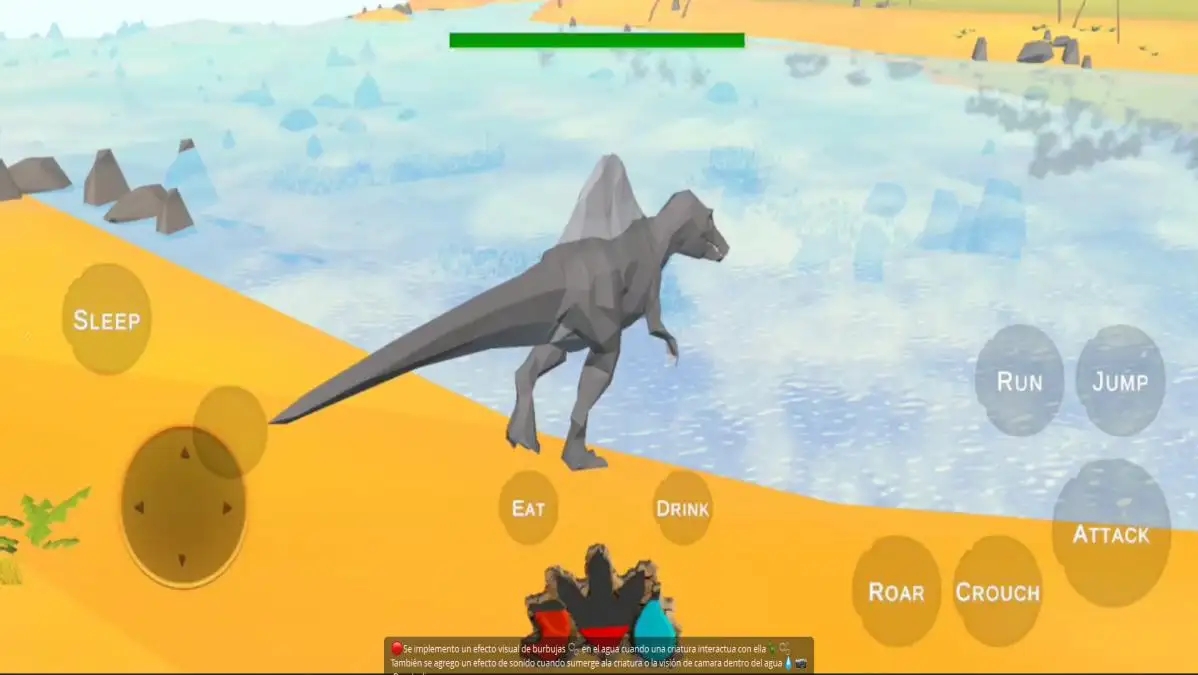 5、攻击其他恐龙可以将其吞食,吃掉对方可以恢复你的生命值和能量,饥渴值可以通过喝水来恢复