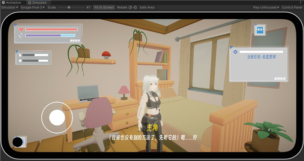 2、操控你的美少女角色在空旷的房间里面展开冒险。