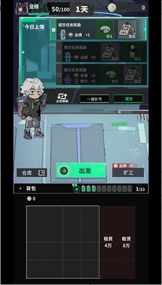4.关于出发搜寻物质开局最好就不要租赁,因为前期高物质地点很少,所以可以不用租赁,还有就是体力规划,前期可以不必把体力搜寻完,可以攒起来,看个人,最多可以攒10体力